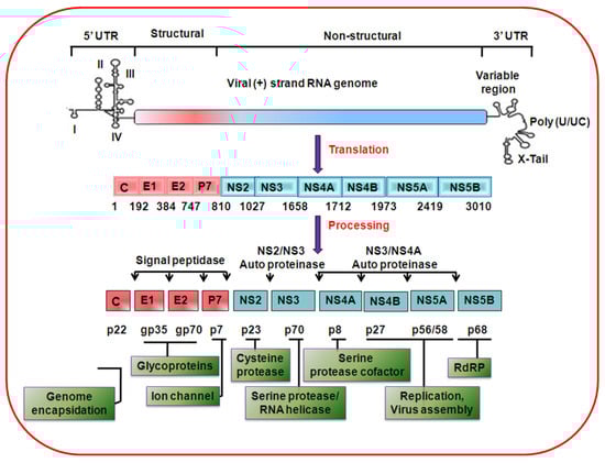 - Tomei, L.; Failla, C.; Santolini, E.; De Francesco, R.; La Monica, N. NS3 is a serine protease required for processing of hepatitis C virus polyprotein. J. Virol. 1993, 67, 4017–4026. [Google Scholar] [CrossRef]