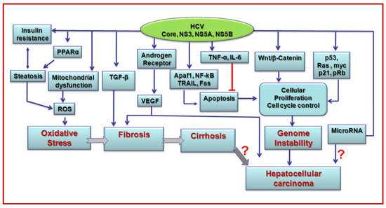 - Koike, K. Hepatitis C virus contributes to hepatocarcinogenesis by modulating metabolic and intracellular signaling pathways. J. Gastroenterol. Hepatol. 2007, 22, S108–111. [Google Scholar] [CrossRef]