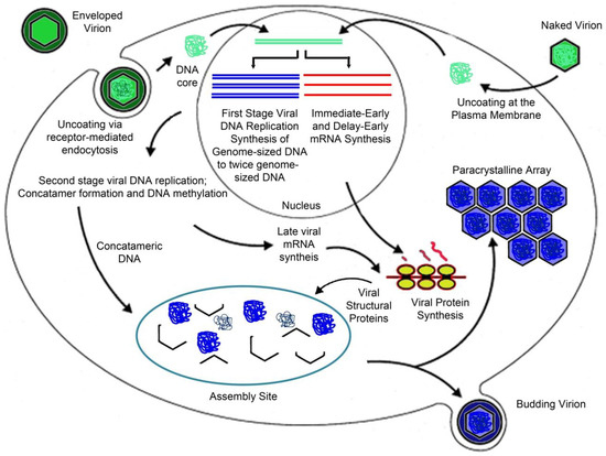 - Goorha, R.; Granoff, A. Icosahedral cytoplasmic deoxyriboviruses. Comprehensive Virology; Fraenkel-Conrat, H., Wagner, R.R., Eds.; Plenum Press: New York, NY, USA, 1979; Volume 14, pp. 347–399. [Google Scholar]