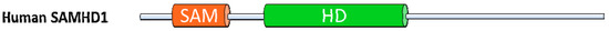 Schematic representation of the human SAMHD1 protein indicating the SAM and the HD domain. A putative feline SAMHD1-encoding gene is found on cat chromosome 13.