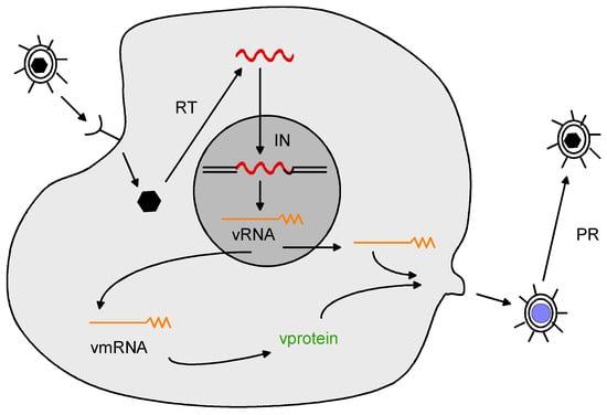 - Coffin, J.; Hughes, S.; Varmus, H. Retroviruses; Cold Spring Harbor Laboratory Press: Cold Spring Harbor, NY, USA, 1997. [Google Scholar]