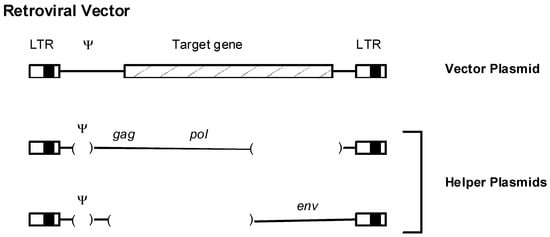 - Miller, A.D. Retroviral vectors. Curr. Top. Microbiol. Immunol. 1992, 158, 1–24. [Google Scholar] [PubMed]