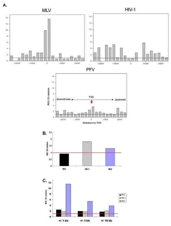 - Holman, A.G.; Coffin, J.M. Symmetrical base preferences surrounding HIV-1, avian sarcoma/leukosis virus, and murine leukemia virus integration sites. Proc. Natl. Acad. Sci. USA 2005, 102, 6103–6107. [Google Scholar] [CrossRef]