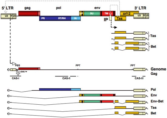 - Löchelt, M.; Flugel, R.M.; Aboud, M. The human foamy virus internal promoter directs the expression of the functional Bel 1 transactivator and Bet protein early after infection. J. Virol. 1994, 68, 638–645. [Google Scholar] [PubMed]