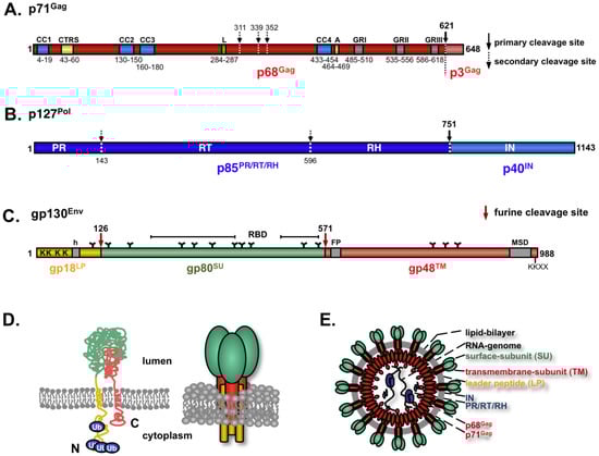 - Lindemann, D.; Pietschmann, T.; Picard-Maureau, M.; Berg, A.; Heinkelein, M.; Thurow, J.; Knaus, P.; Zentgraf, H.; Rethwilm, A. A particle-associated glycoprotein signal peptide essential for virus maturation and infectivity. J. Virol. 2001, 75, 5762–5771. [Google Scholar] [CrossRef] [PubMed]