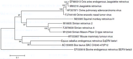 3.6. Phylogenetic Analysis of EqERV-Beta1