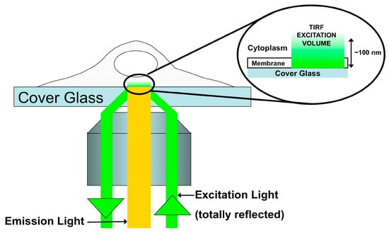 - Axelrod, D. Total Internal Reflection Fluorescence Microscopy. In Biophysical Tools for Biologists, Vol 2: In Vivo Techniques; Elsevier Academic Press Inc: San Diego, CA, USA, 2008; Volume 89, pp. 169–221. [Google Scholar]