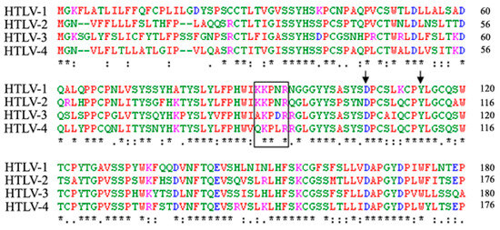 - Le Blanc, I.; Grange, M.P.; Delamarre, L.; Rosenberg, A.R.; Blot, V.; Pique, C.; Dokhelar, M.C. HTLV-1 structural proteins. Virus Res. 2001, 78, 5–16. [Google Scholar] [CrossRef]