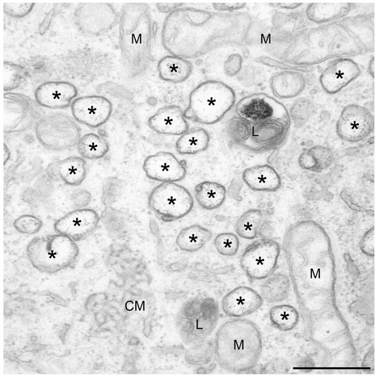 - Snijder, E.J.; van der Meer, Y.; Zevenhoven-Dobbe, J.; Onderwater, J.J.; van der Meulen, J.; Koerten, H.K.; Mommaas, A.M. Ultrastructure and origin of membrane vesicles associated with the severe acute respiratory syndrome coronavirus replication complex. J. Virol. 2006, 80, 5927–5940. [Google Scholar] [CrossRef]
