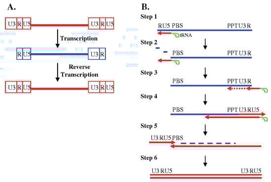 - Hu, W.S.; Temin, H.M. Retroviral recombination and reverse transcription. Science 1990, 250, 1227–1233. [Google Scholar] [CrossRef]