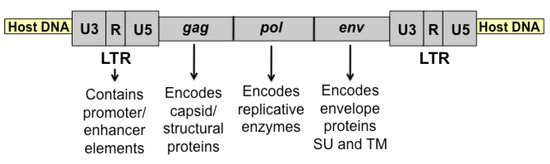 Gene expression in retroviruses is directed by the LTR, a structure generated at the termini of the proviral genome by reverse transcription. The LTR is a modular structure consisting of a DNA form of the U3, R, and U5 regions of viral RNA (Figure 3A). The U3 is particularly relevant for the regulation of gene expression as it contains the transcriptional promoter and potent enhancer sequences. These regulatory elements can act both on adjacent viral genes and on cellular genes near the site of proviral integration, or indeed across significant sequence distance. As such, the LTR of FeLV is capable of directing a high level of viral gene expression and can also direct expression of host genes. When such host genes have oncogenic potential, the LTR-mediated activation plays a principal role in the malignant process [6].