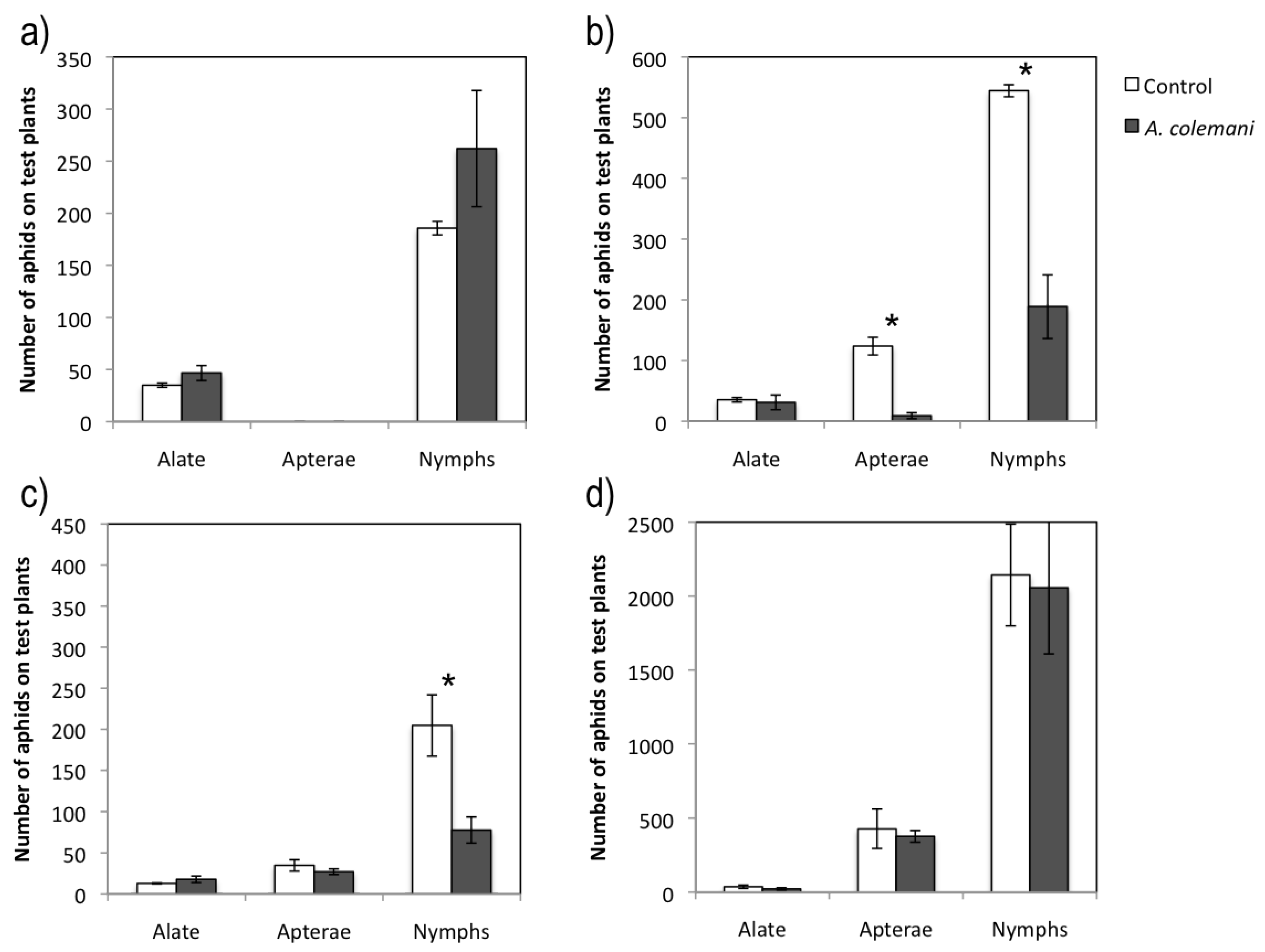 | Control | A. colemani | X 2 | p | Control | A. colemani | X 2 | p | |