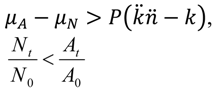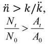 Pt > kPt, implying that At/A0 < Nt/N0.