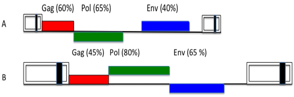 If retroviruses get access to gametocytes, the result can be an endogenous form of the virus, which than mutates “neutrally” and is passaged in the germline along with the host cell genome and no longer transmitted as an exogenous virus [167,168]. In the vast majority of cases, “lethal” mutations accumulate over time in replication-required viral reading frames [167]. Approximately 8% of the human genome is made up by endogenous retroviruses, and a further 30%–40% of sequences are the result of reverse transcription [167].