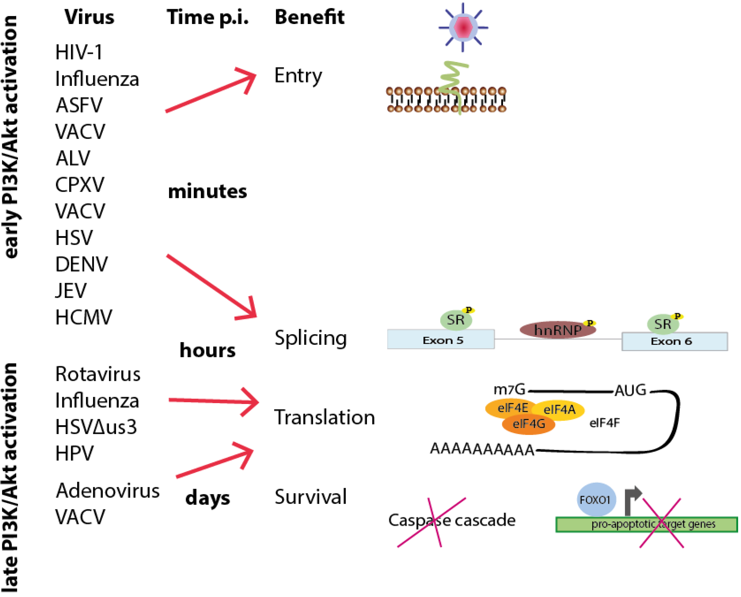 Diehl, N.; Schaal, H. Make Yourself at Home: Viral Hijacking of the PI3K/Akt Signaling Pathway. Viruses 2013, 5, 3192-3212. https://doi.org/10.3390/v5123192