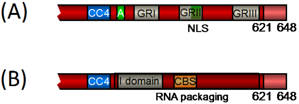 To begin our overview of the FV Gag domains we shall briefly review common Gag domains, which FV Gag shares with some of its orthoretroviral counterparts. These are the domains for incorporation of the envelope protein (Env), the cytoplasmic targeting and retention signal (CTRS) that directs Gag to the region where particle assembly occurs, interaction (I) domains that are essential for Gag-Gag interactions during capsid assembly, and late (L) domains that are required for particle release [23].