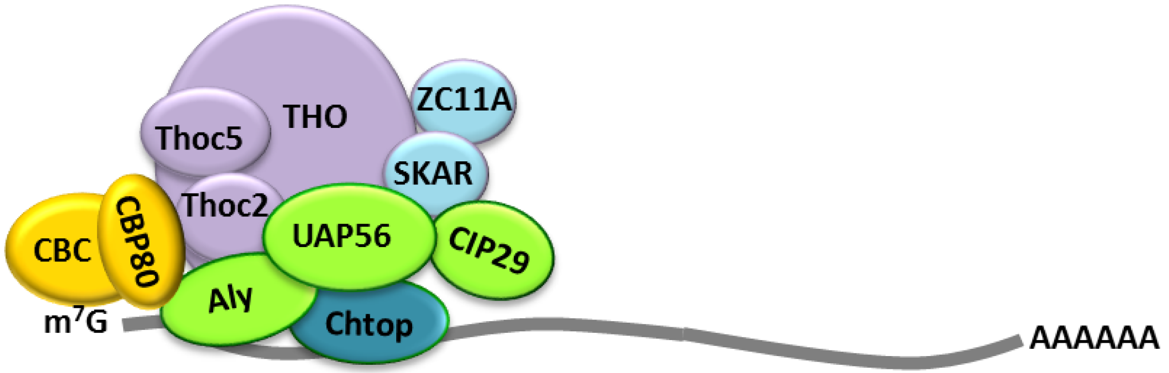 | Aly | Ref, Alyref, Thoc4, Bef | Yra1 | UAP56 [34], Chtop [29], Thoc5, Thoc2 [35] |