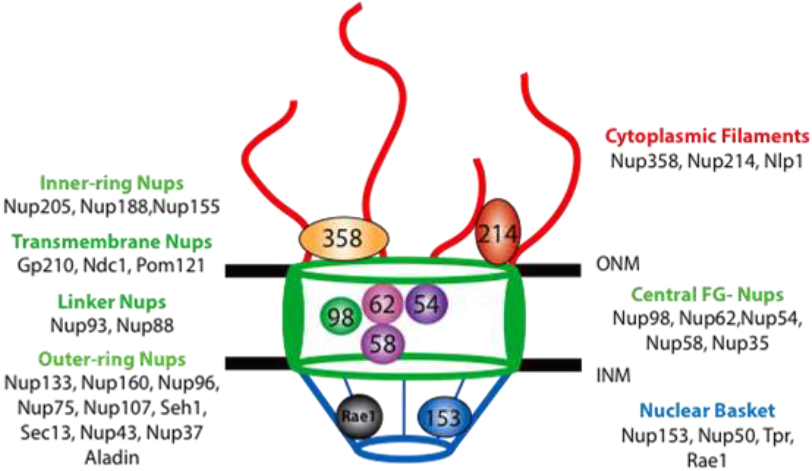 - Strambio-de-Castillia, C.; Niepel, M.; Rout, M.P. The nuclear pore complex: Bridging nuclear transport and gene regulation. Nat. Rev. Mol. Cell Biol. 2010, 11, 490–501. [Google Scholar] [CrossRef]
