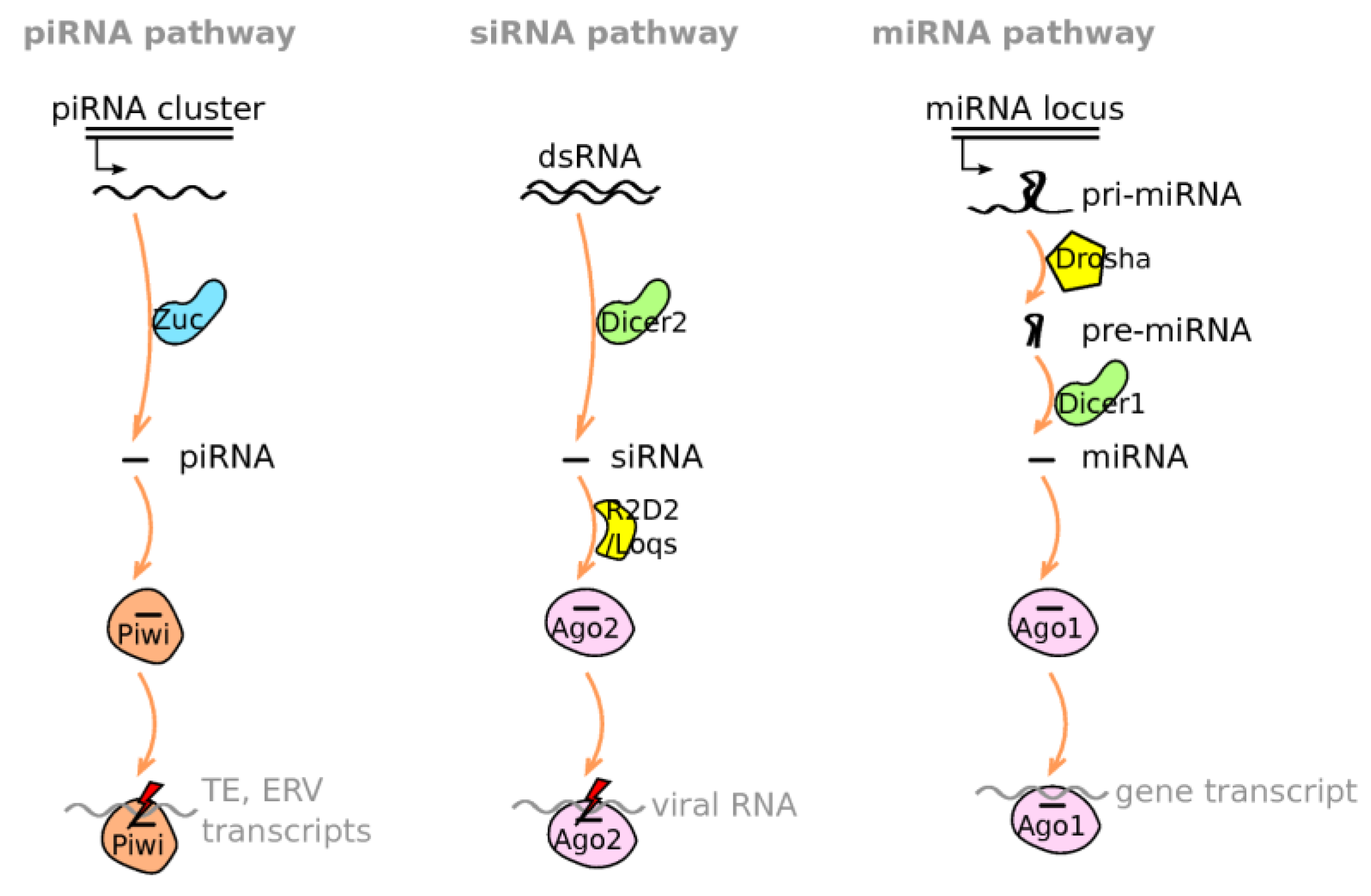 | Biogenesis effector | Primary pathway: Zuc | Dicer-2 | Dicer-1 |