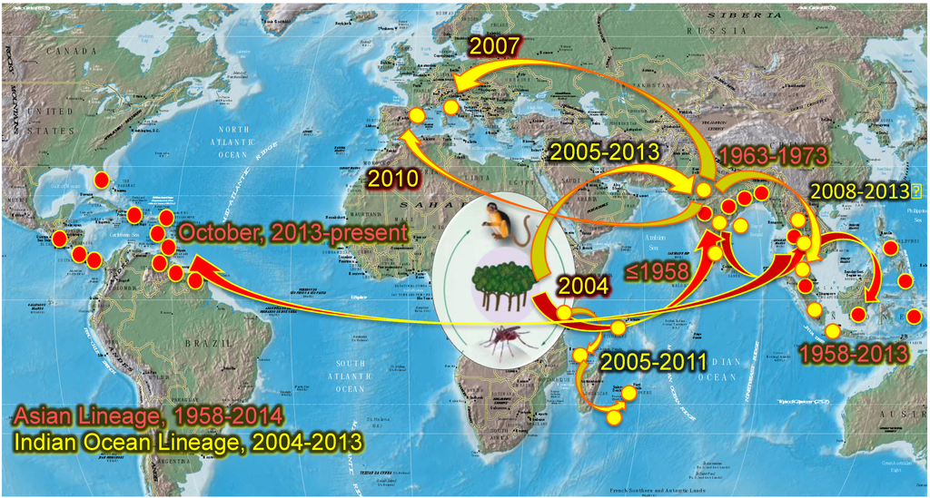 2.2. Chikungunya Distribution, Emergence and Spread