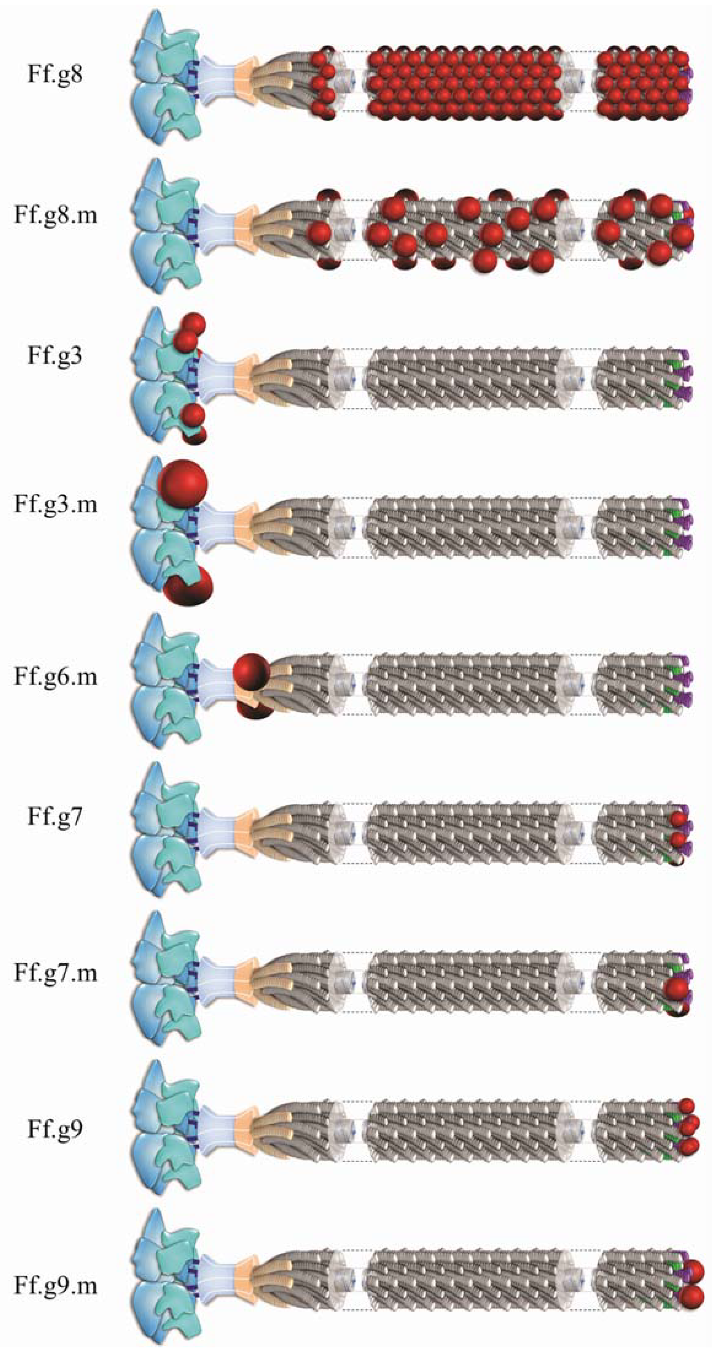 - Makowski, L. Terminating a macromolecular helix. Structural model for the minor proteins of bacteriophage m13. J. Mol. Biol. 1992, 228, 885–892. [Google Scholar]