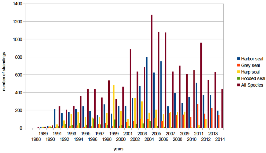 - Harding, K.C.; Harkonen, T.; Caswell, H. The 2002 European seal plague: Epidemiology and population consequences. Ecol. Lett. 2002, 5, 727–732. [Google Scholar] [CrossRef]