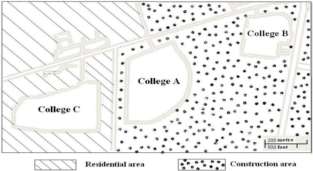 HV infection occurs via virus-containing, aerosolized rodent excretions such as urine, feces, or saliva, and people living or working in close contact with infected rodents are at increased risk of infection [12]. The rodent populations sizes were larger in Colleges A and B (construction area) than in College C (residential area). Because Colleges A and B were the only residential sites providing a possible food supply for the rodents, infrastructure development may have led to the perturbation of the rodent habitat and increased the rodent population density. Recently, HFRS outbreaks have also been observed among workers at construction sites in Xi’an (data not published). Rodent habitat perturbation may make the rodents more active and increase the chances of contact with people working or living in the area. A lower rodent population density and no HFRS cases in College C support this hypothesis.