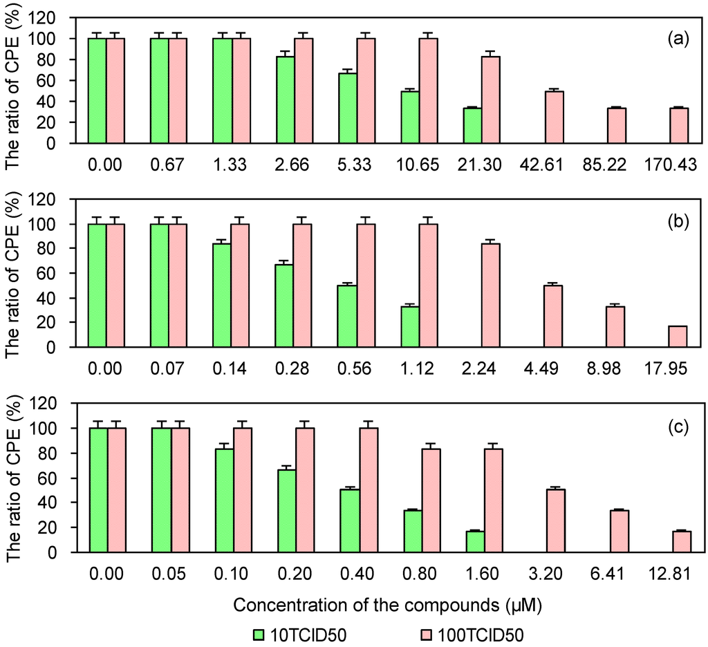 | Compounds | 10 TCID50 | 100 TCID50 | ||