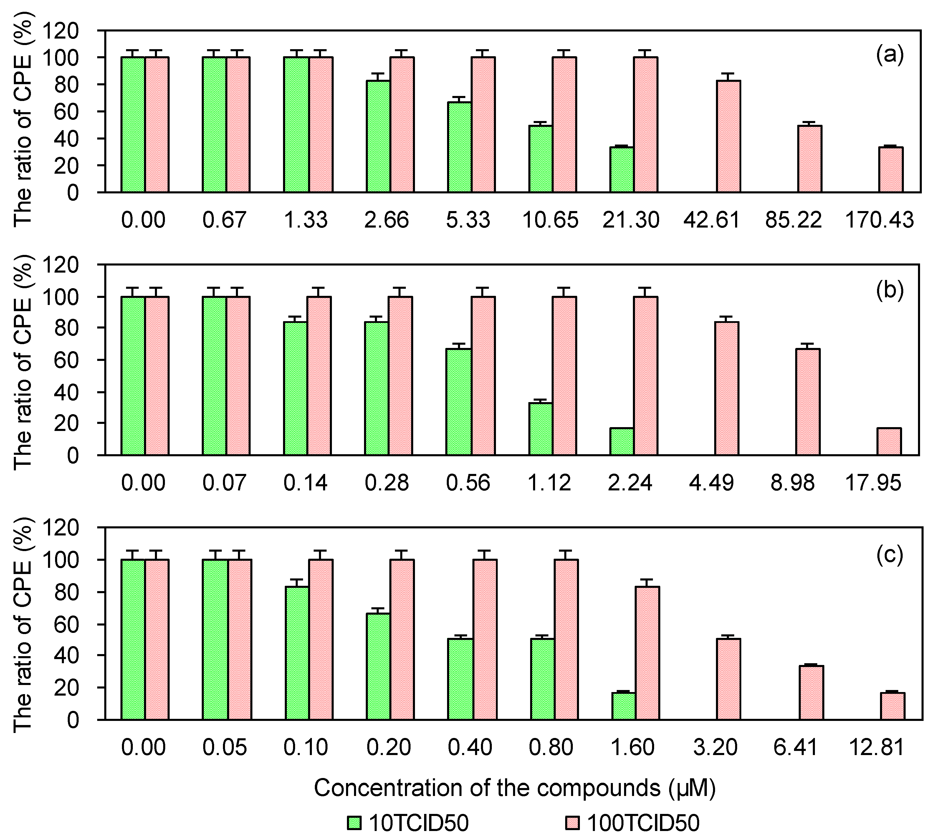 | Compounds | 10 TCID50 | 100 TCID50 | ||