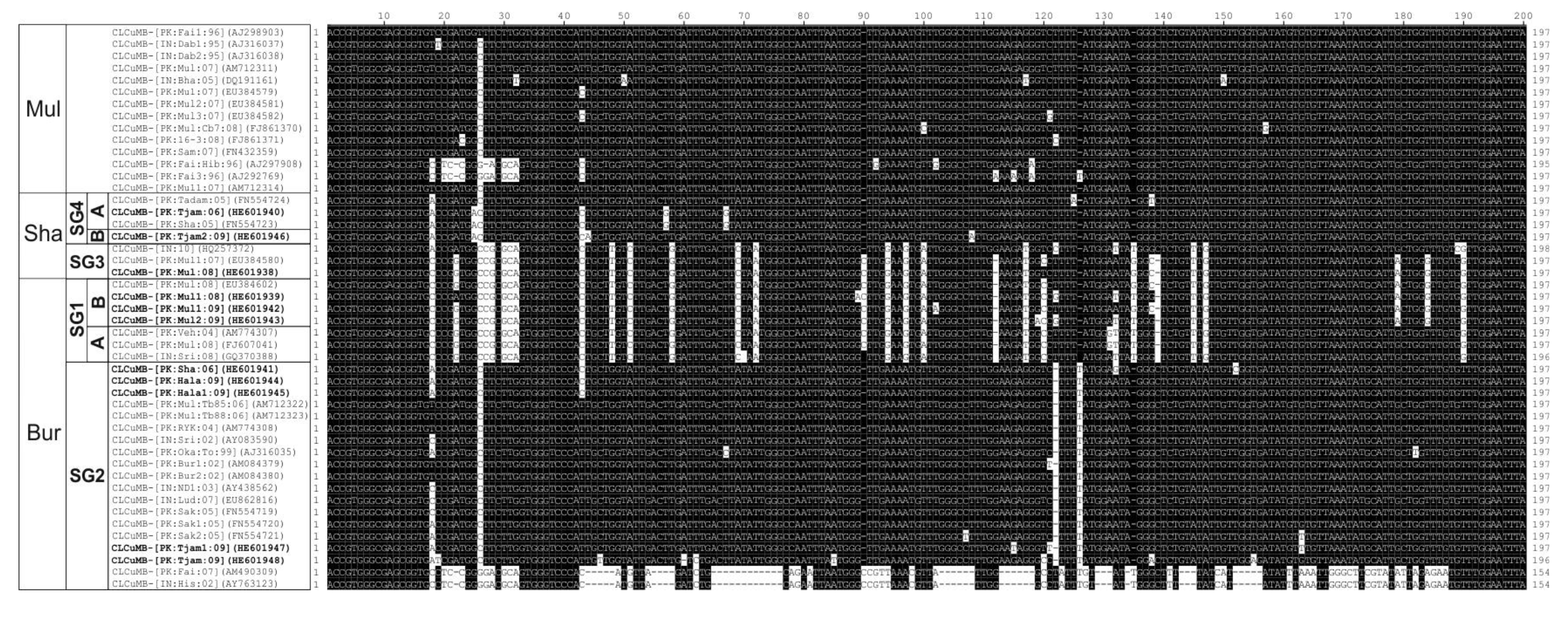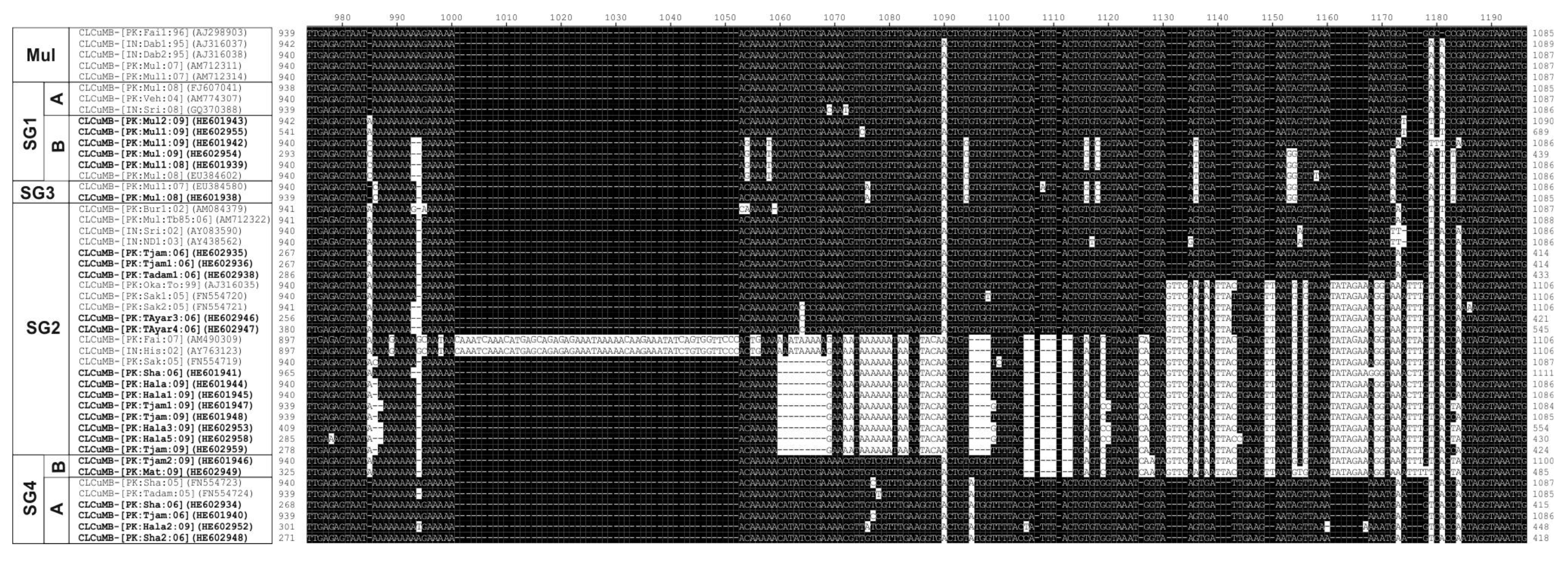 Chicago/Turabian StyleAkhtar, Sohail, Muhammad Nouman Tahir, Ghulam Rasool Baloch, Shaista Javaid, Ali Qaiser Khan, Imran Amin, Rob W. Briddon, and Shahid Mansoor. 2014. "Regional Changes in the Sequence of Cotton Leaf Curl Multan Betasatellite" Viruses 6, no. 5: 2186-2203. https://doi.org/10.3390/v6052186