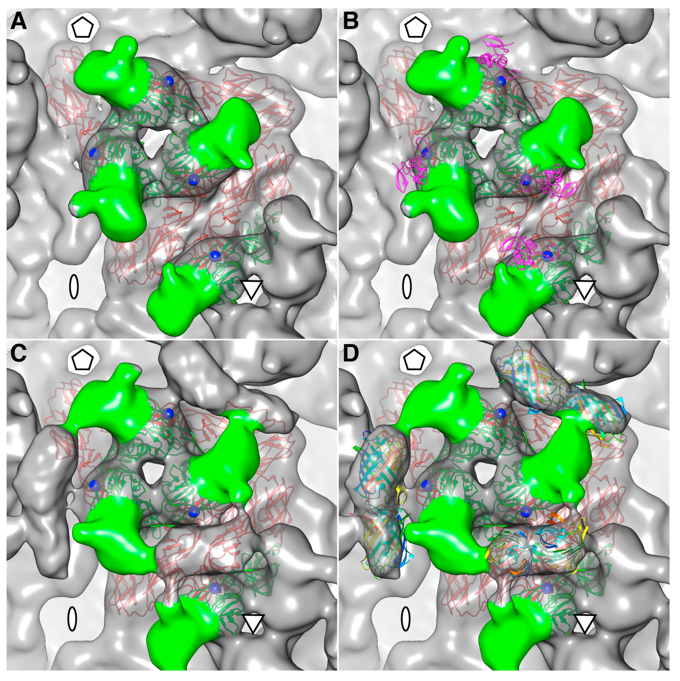2.6. Virus Purification, Cryo-Electron Microscopy (cryoEM), and 3D Image Reconstruction