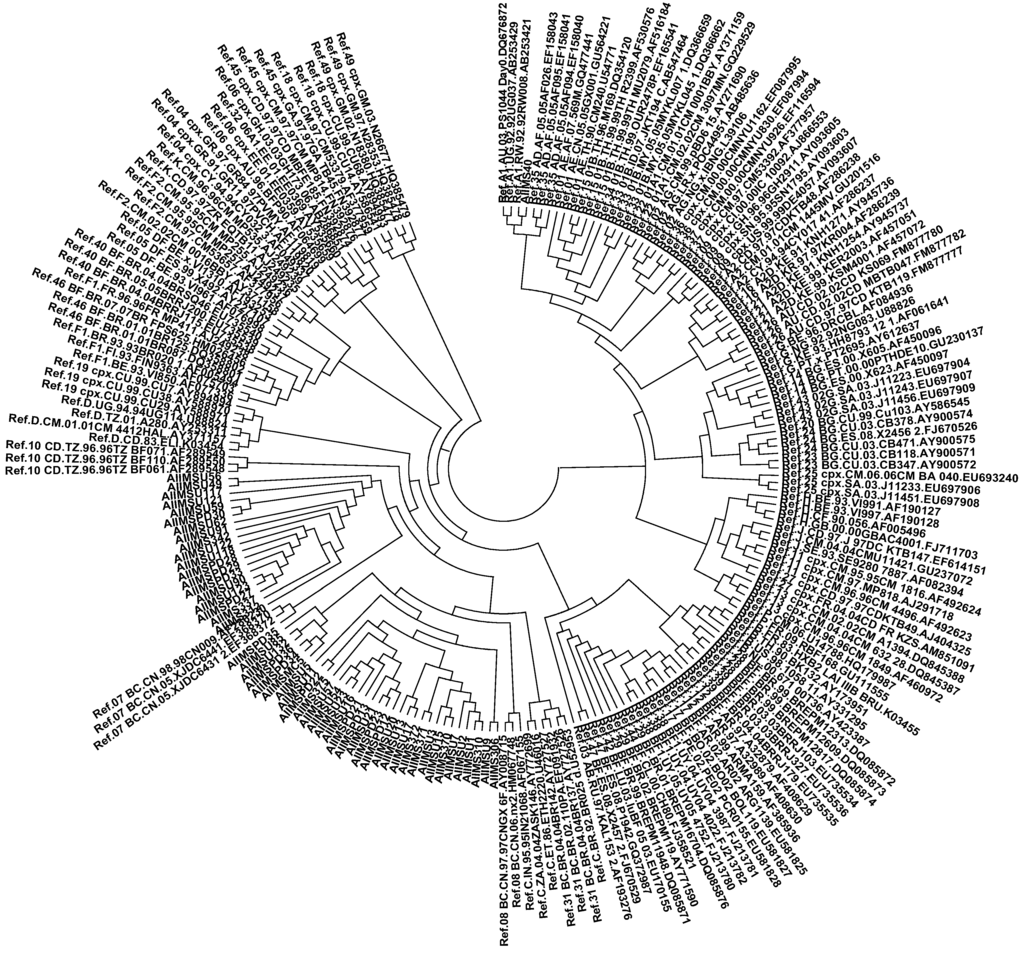 15. Soundararajan, L.; Karunaianandham, R.; Jauvin, V.; Schrive, M.H.; Ramachandran, R.; Narayanan, P.R.; Fleury, H.J.; Swaminathan, S. Characterization of hiv-1 isolates from antiretroviral drug-naive children in southern india. AIDS Res. Hum. Retrovir. 2007, 23, 1119–1126. [Google Scholar] [CrossRef] [PubMed]