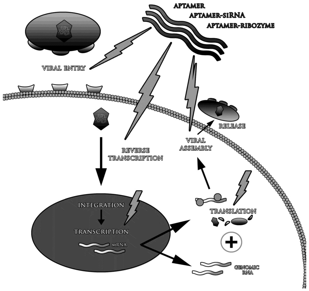 High variable viral genome regions are the common cause of virus resistance to currently used therapies. Thus, there is a requirement to generate aptamers specific to highly conserved nucleic acid regions, where mutations appear relatively rare. The most attention has been paid to HCV and HIV-1 infections, due to their prevalence, severe complications and well-known therapeutic problems. Other viral diseases considered as aptamer targets include influenza, HSV (Herpes Simplex Virus) and HBV infections, i.e., the diseases, with commonly occurring immune antiviral response.
