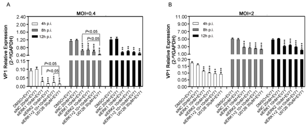 3.2. Depletion of Individual ERK Isoform Resulted in a Similar Reduction of EV71 Proliferation