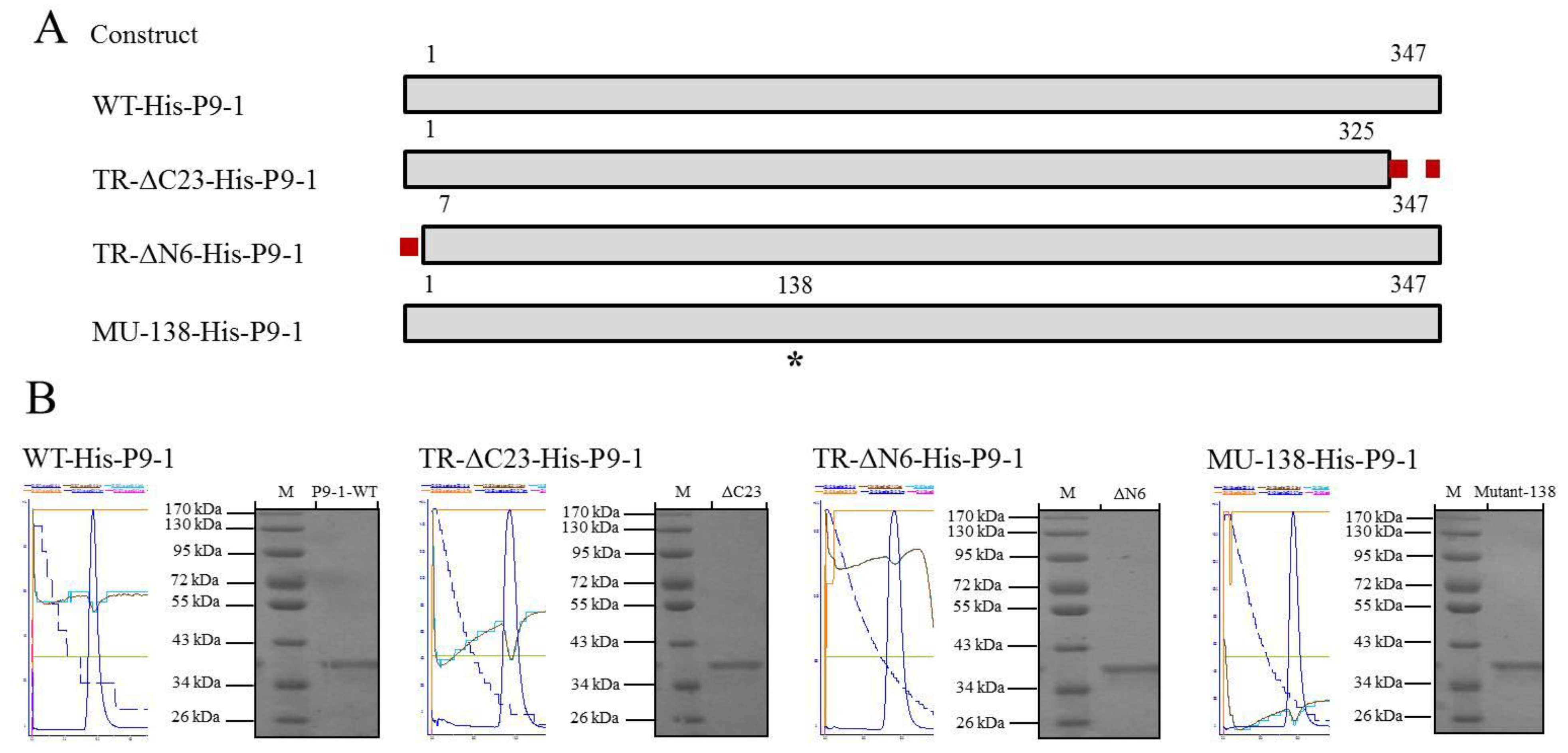 2.4. Construction of WT-His-P9-1 and Mutant Plasmids