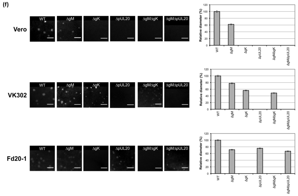 3.5. Plaque Size Analysis of Recombinant Viruses Lacking gK/pUL20 and gM
