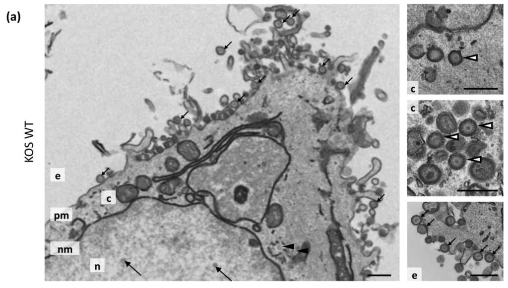 | Virus | Nuclear Capsids | Cytoplasmic Non-Enveloped Capsids | Cytoplasmic Enveloped Virions | Extracellular Virions | Total |