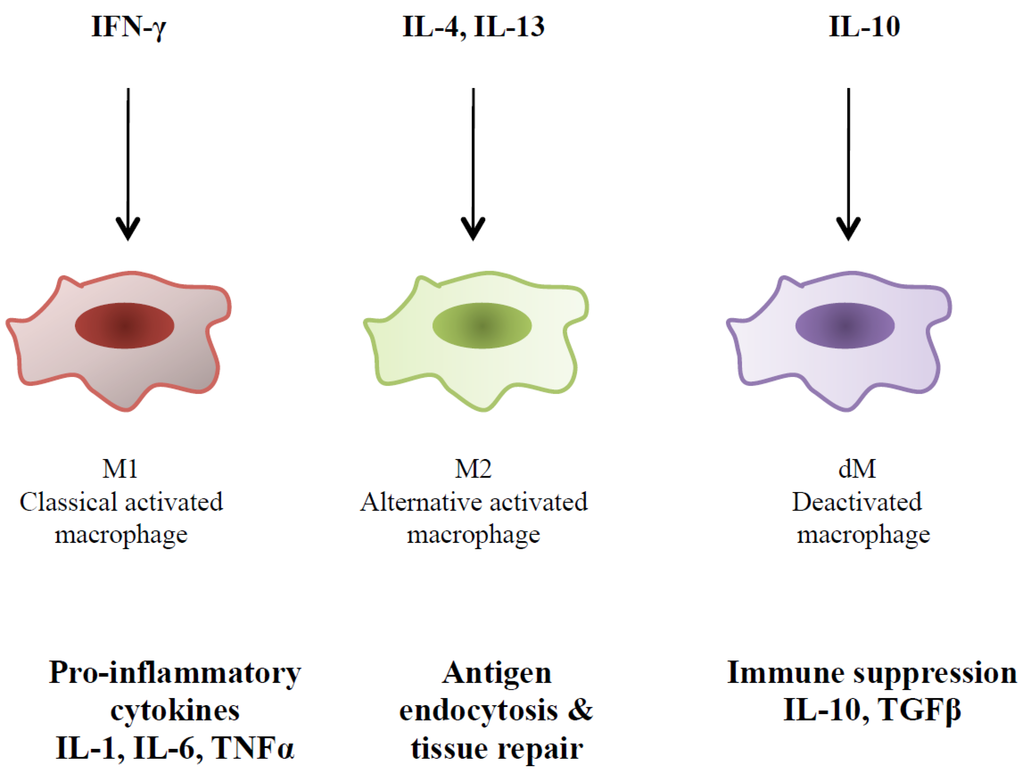 - Mills, C.D.; Ley, K. M1 and M2 macrophages: The chicken and the egg of immunity. J. Innate Immun. 2014, 6, 716–726. [Google Scholar] [CrossRef] [PubMed]