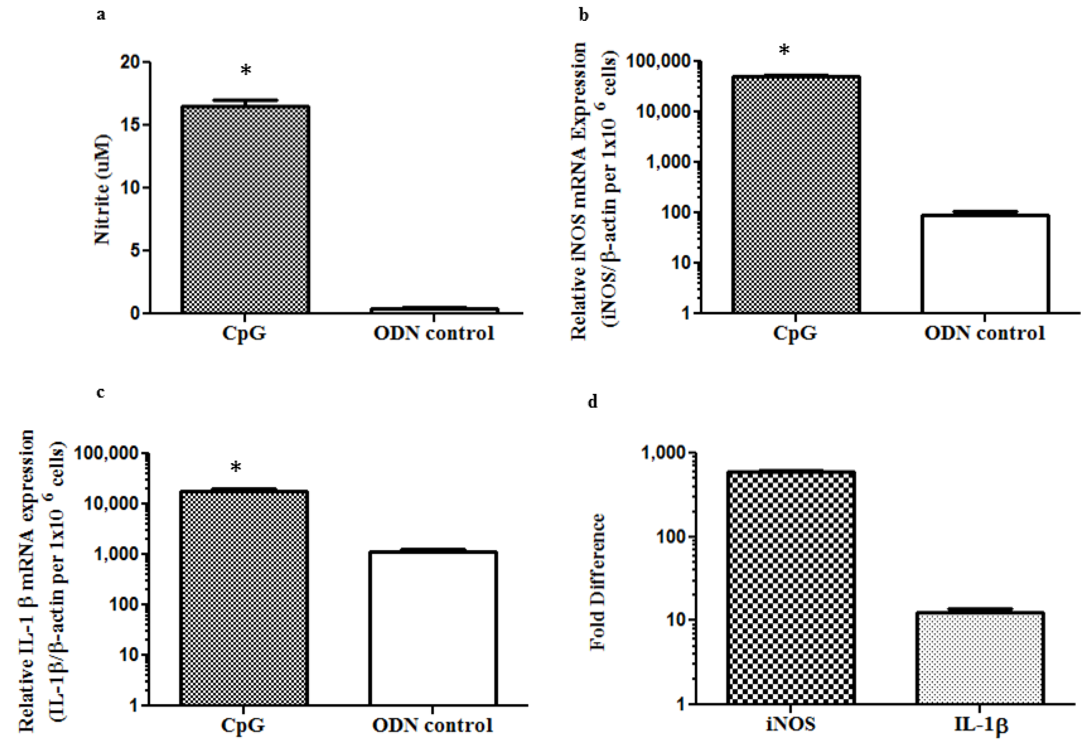 2.2. Stimulation of Macrophages in Vitro with CpG DNA up Regulates mRNA Expression of Pro-Inflammatory Mediators and Increases NO Production
