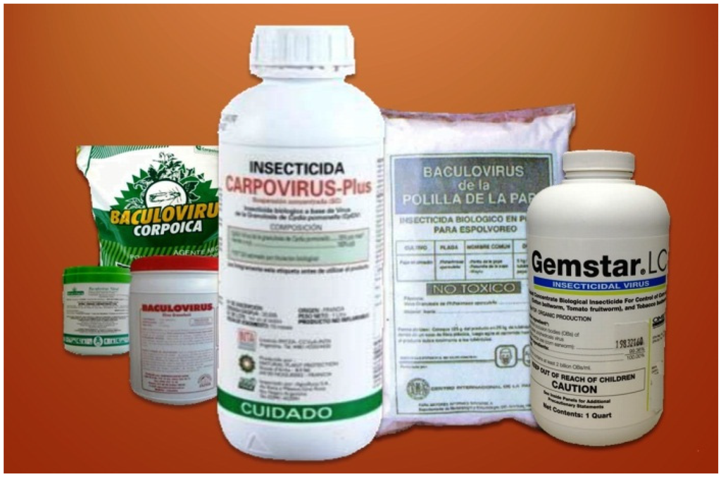 A summary of baculovirus-based products commercialized and mostly produced in Latin America can be found in Table 1, and Figure 3 is a sample of these commercial products.