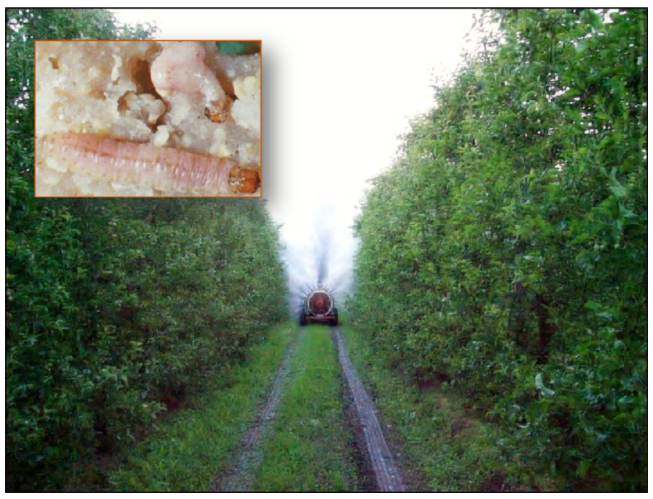 2.2. CpGV for the Control of the Codling Moth in Apple and Pear Orchards
