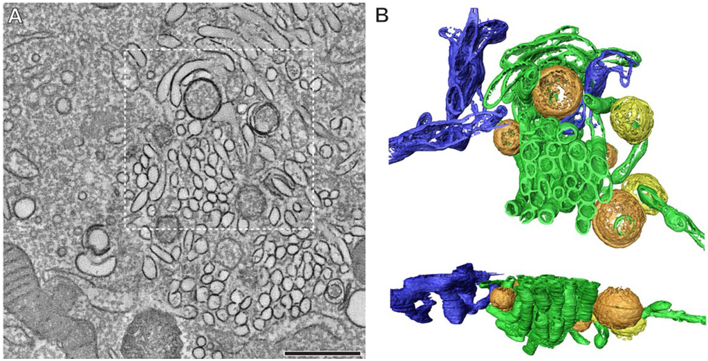- Limpens, R.W.; van der Schaar, H.M.; Kumar, D.; Koster, A.J.; Snijder, E.J.; van Kuppeveld, F.J.; Bárcena, M. The transformation of enterovirus replication structures: A three-dimensional study of single- and double-membrane compartments. MBio 2011. [Google Scholar] [CrossRef] [PubMed]