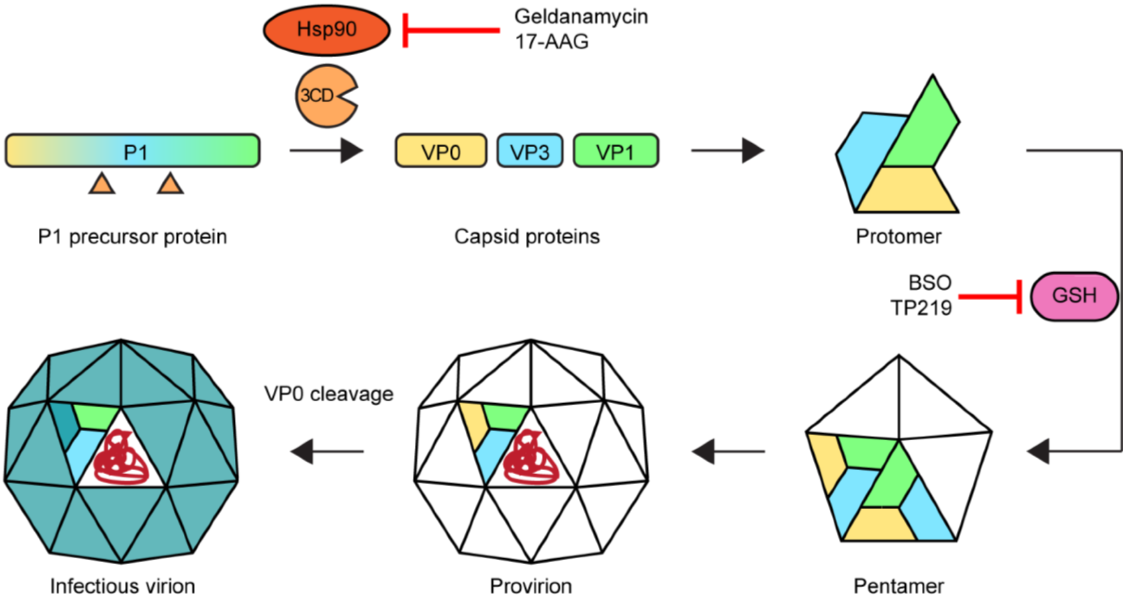- Tsou, Y.-L.; Lin, Y.-W.; Chang, H.-W.; Lin, H.-Y.; Shao, H.-Y.; Yu, S.-L.; Liu, C.-C.; Chitra, E.; Sia, C.; Chow, Y.-H. Heat shock protein 90: Role in enterovirus 71 entry and assembly and potential target for therapy. PLoS ONE 2013, 8, e77133. [Google Scholar] [CrossRef] [PubMed]