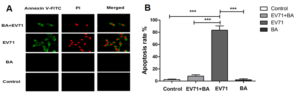 3.5. The Effect of Baicalin on EV71-Induced Apoptosis in RD Cells