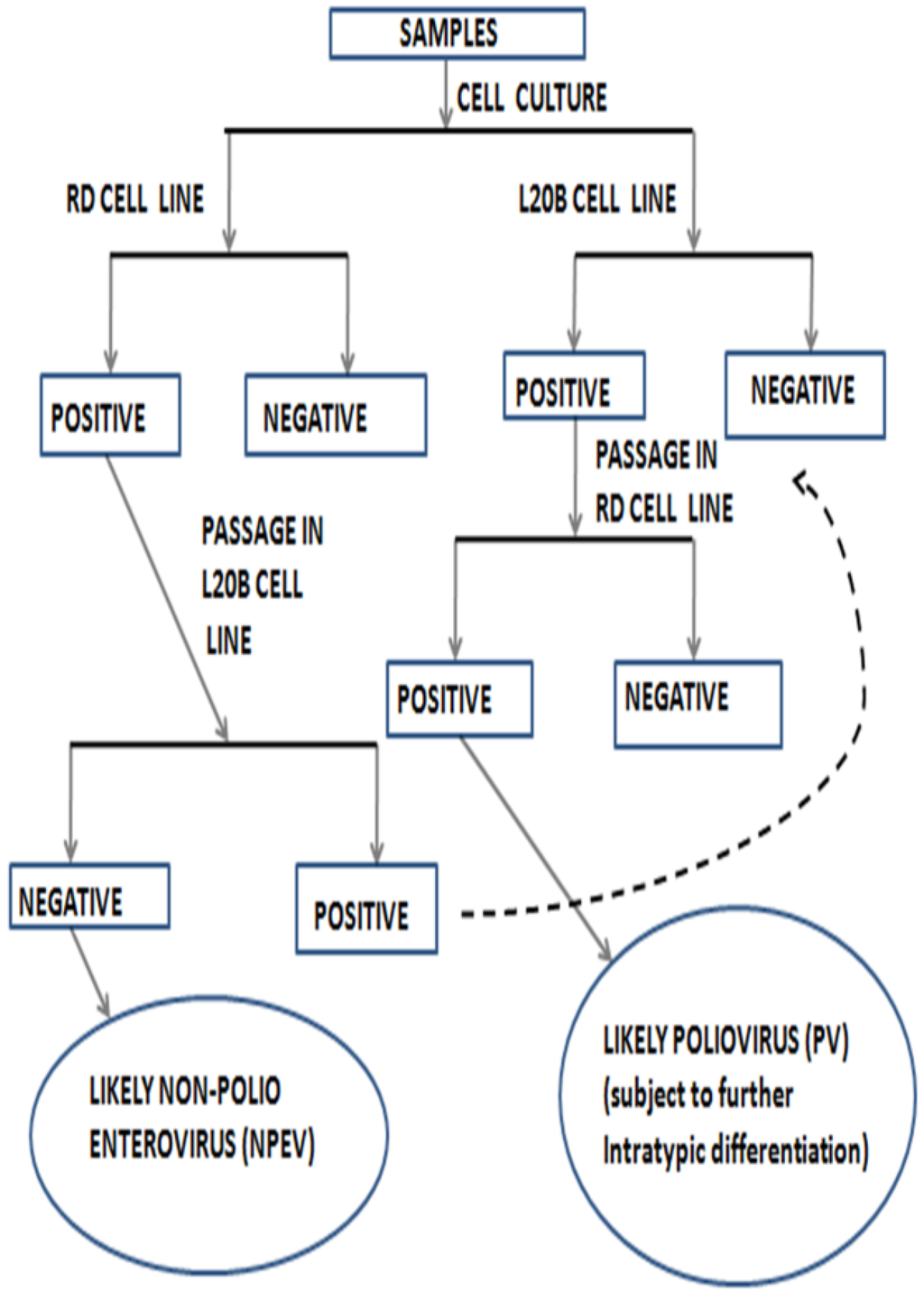 Poliovirus (PV) isolation algorithm as recommended by the World Health Organization (2003, 2004).