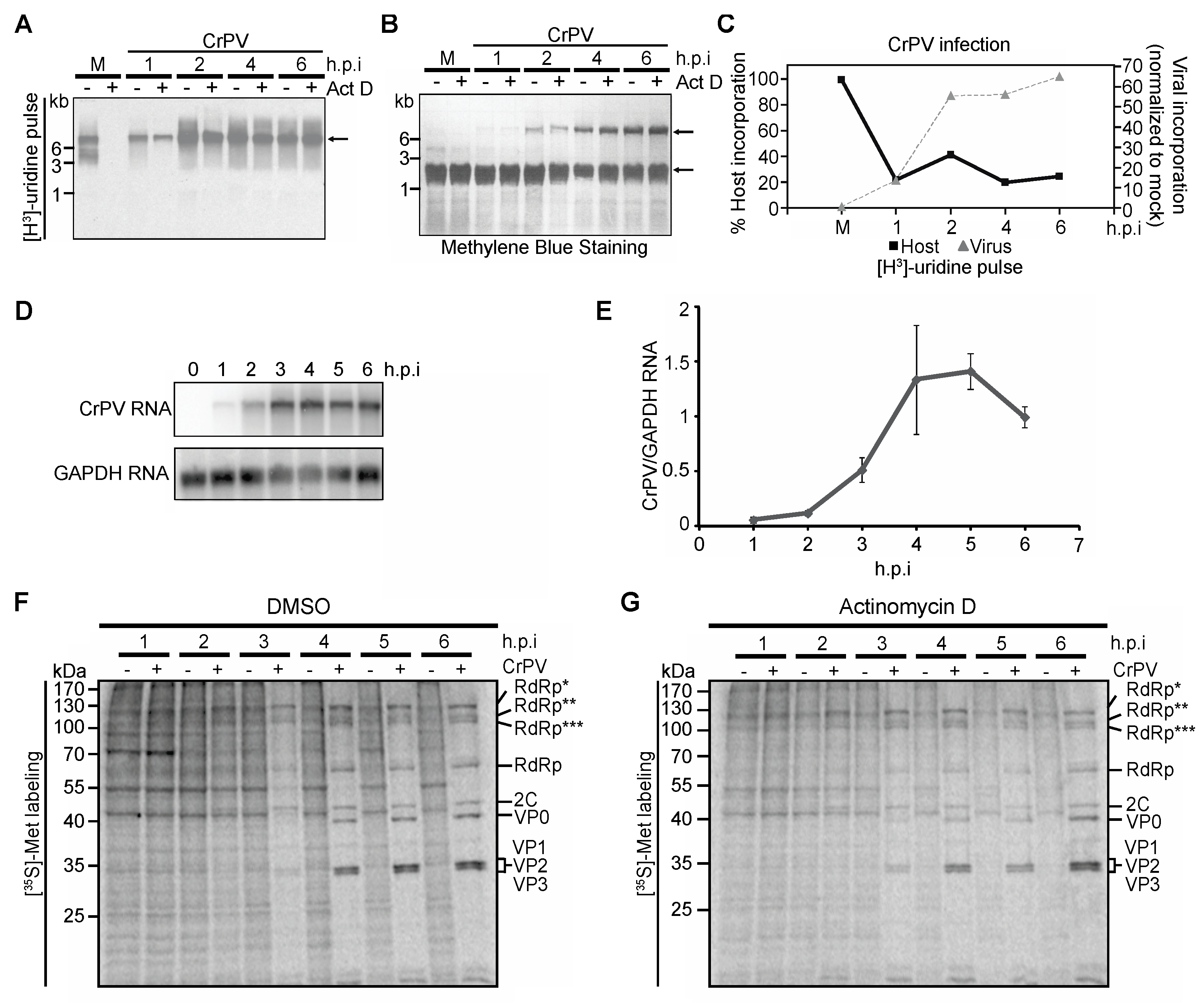 3.4. Role of Transcriptional Shutoff in Viral Protein Synthesis under CrPV Infection