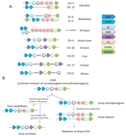 - Qi, Z.; Nie, P.; Secombes, C.J.; Zou, J. Intron-containing type I and type III IFN coexist in amphibians: Refuting the concept that a retroposition event gave rise to type I IFNs. J. Immunol. 2010, 184, 5038–5046. [Google Scholar] [CrossRef] [PubMed]