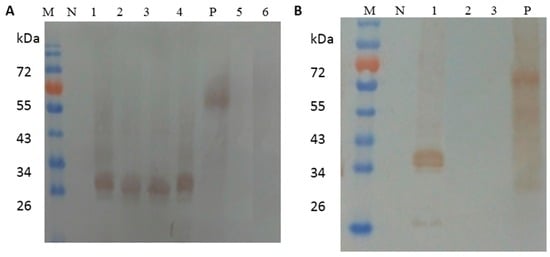 3.2. Mapping of the Minimal Epitopes by Dot Blotting and Western Blot