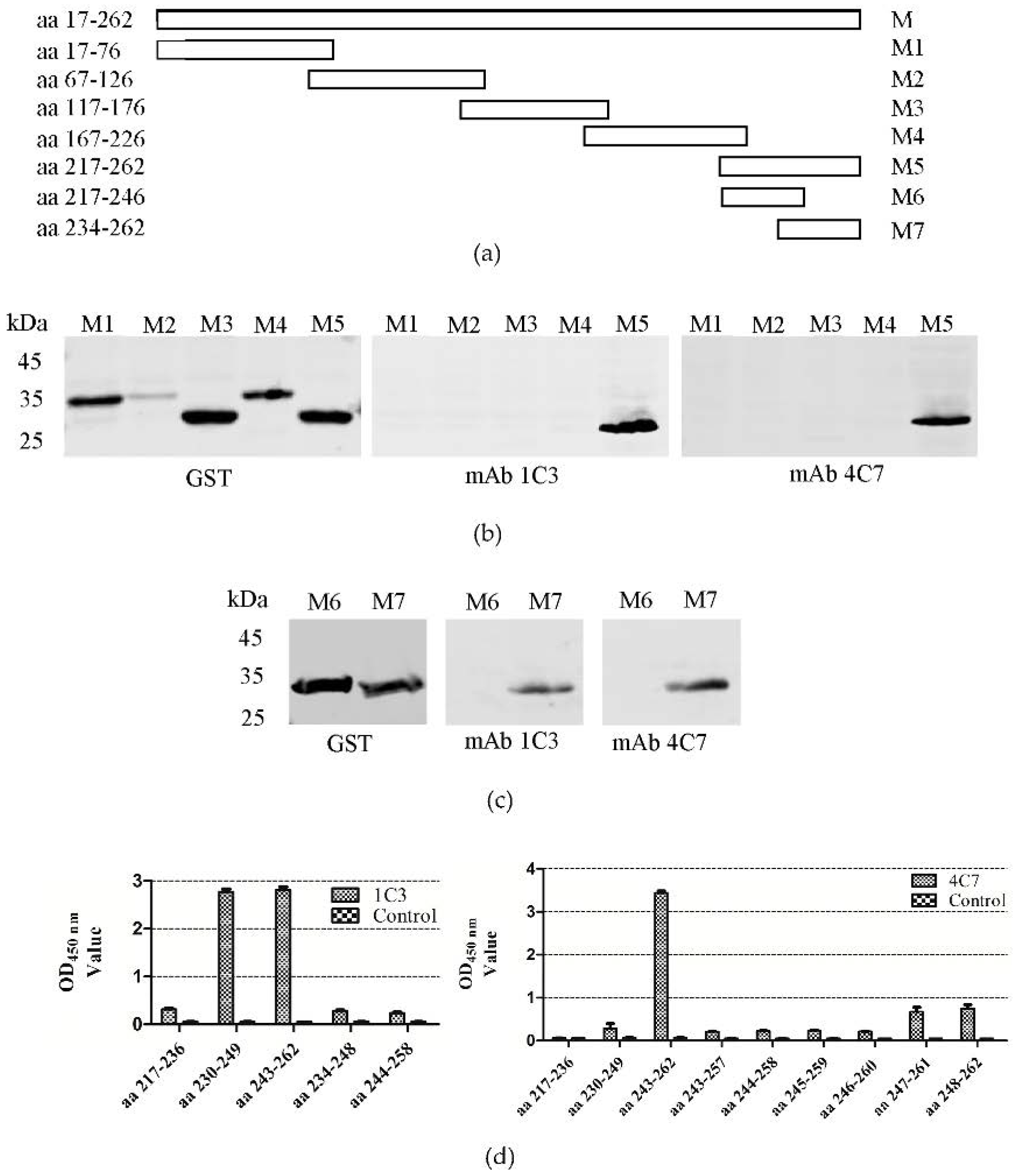 3.3. Determination of the 1C3 and 4C7 mAb Epitopes