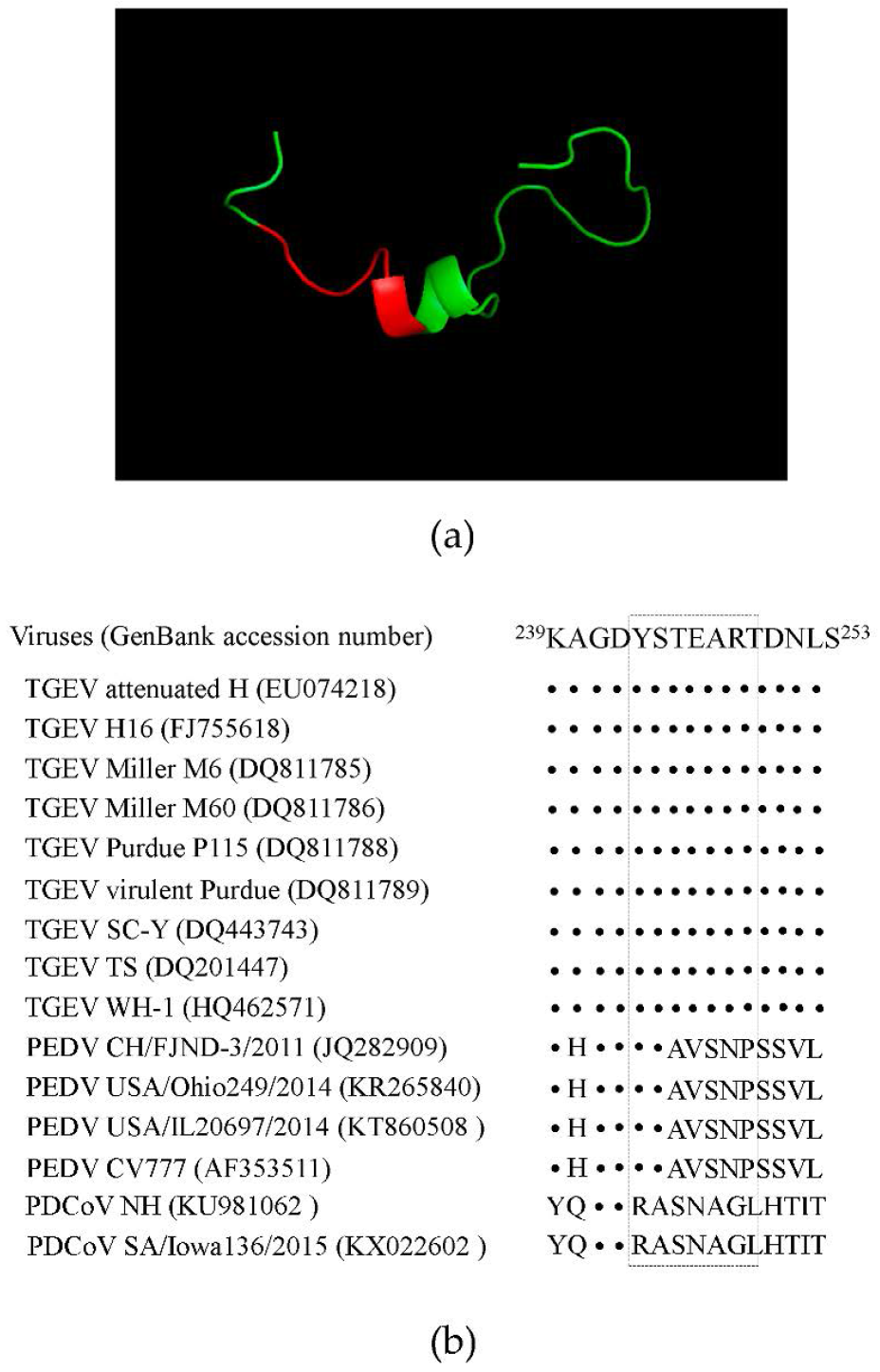 - Zhang, Z.; Chen, J.; Shi, H.; Chen, X.; Shi, D.; Feng, L.; Yang, B. Identification of a conserved linear B-cell epitope in the M protein of porcine epidemic diarrhea virus. Virol. J. 2012, 9. [Google Scholar] [CrossRef] [PubMed]